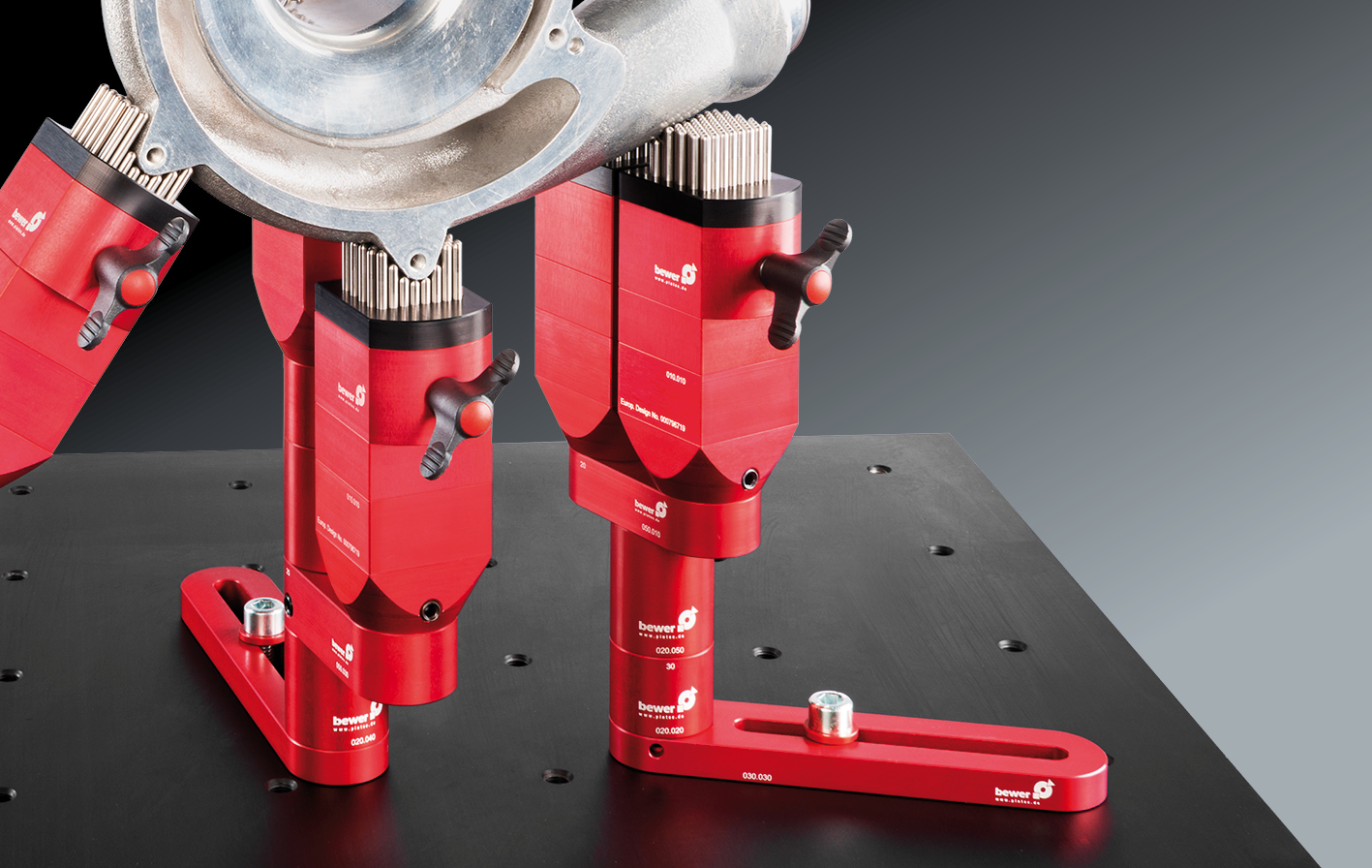安裝式組件將兩個收縮式模組及高度補償式組件以並排定位的夾緊模式,為複雜形狀類工件提供重複性佳、高精度定位的解決方案。