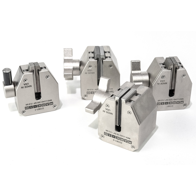 這些重型自緊式夾具適用於多種材料,包括金屬、塑膠、木材和複合材料的拉伸或破裂強度測試,及延伸率、楊氏模組係數等應力、應變的材料分析測試。自緊式不銹鋼鋸形齒或橡膠夾之爪面,透過彈簧加壓的旋鈕、齒條和小齒輪型式組合成樣品測試機構。夾顎崁緊在滾軸上,消除了傳統楔形夾中常見的卡滯物理現象。這種獨特的防止卡住設計和提高夾緊功能,內建高度符合人體工程學的齒條齒輪槓桿機構,其槓桿的平滑度和容易操作之特性可大幅減少操作者的手部疲勞。